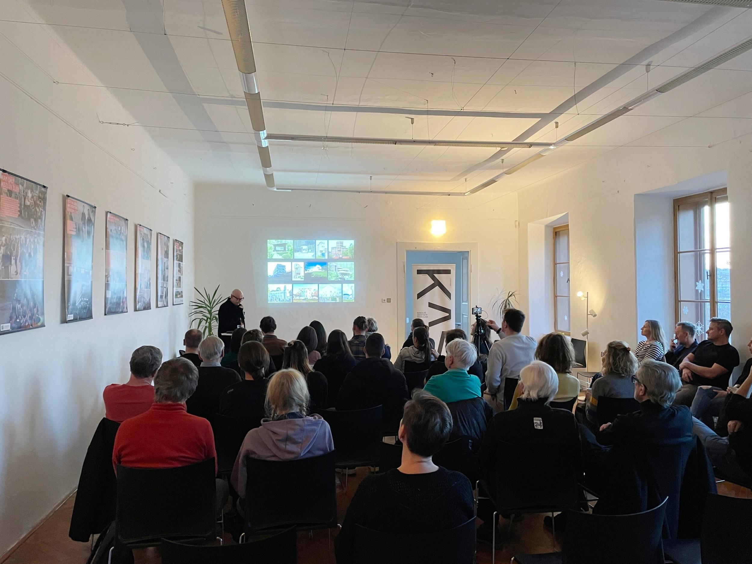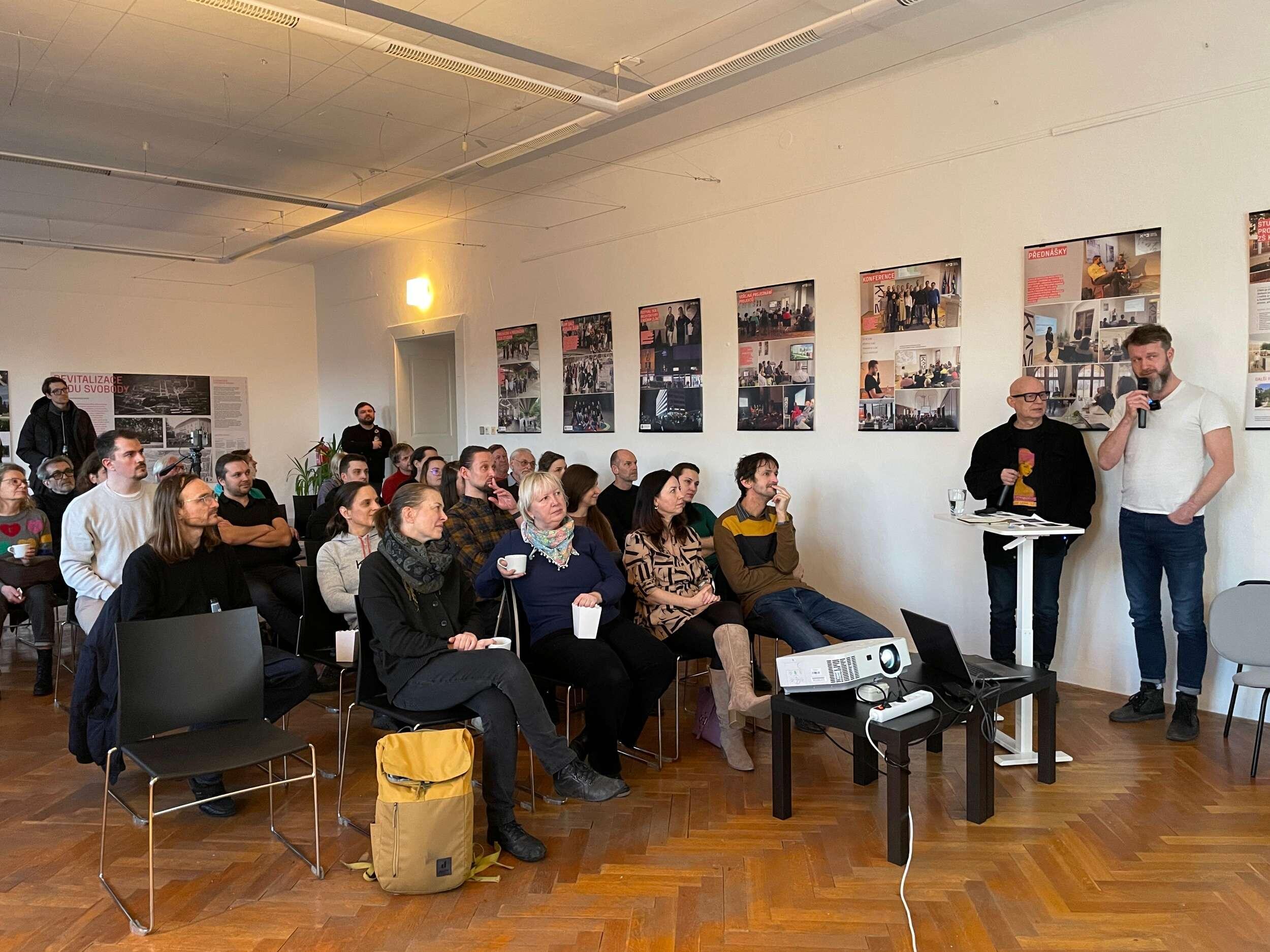 Během přednášky se diskutovalo i o připravované rekonstrukci známé Hrubé hospody ve Fryštáku. Zazněly zkušenosti z navrhování a realizace dalších projektů studia New Work, mezi něž patří letní terasa v Zoo Zlín nebo rekonstrukce Muzea Kroměřížska.