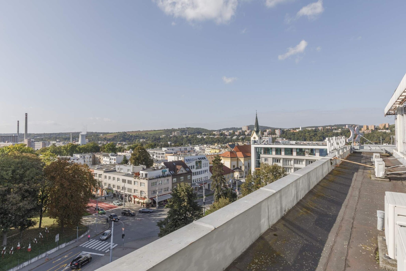 Společně jsme prošli objektem od přízemí až po střechu a seznámili se s historií objektu postaveného v roce 1968, postupným rozšířením o nárožní komerční objekt s parkováním až po současnost.