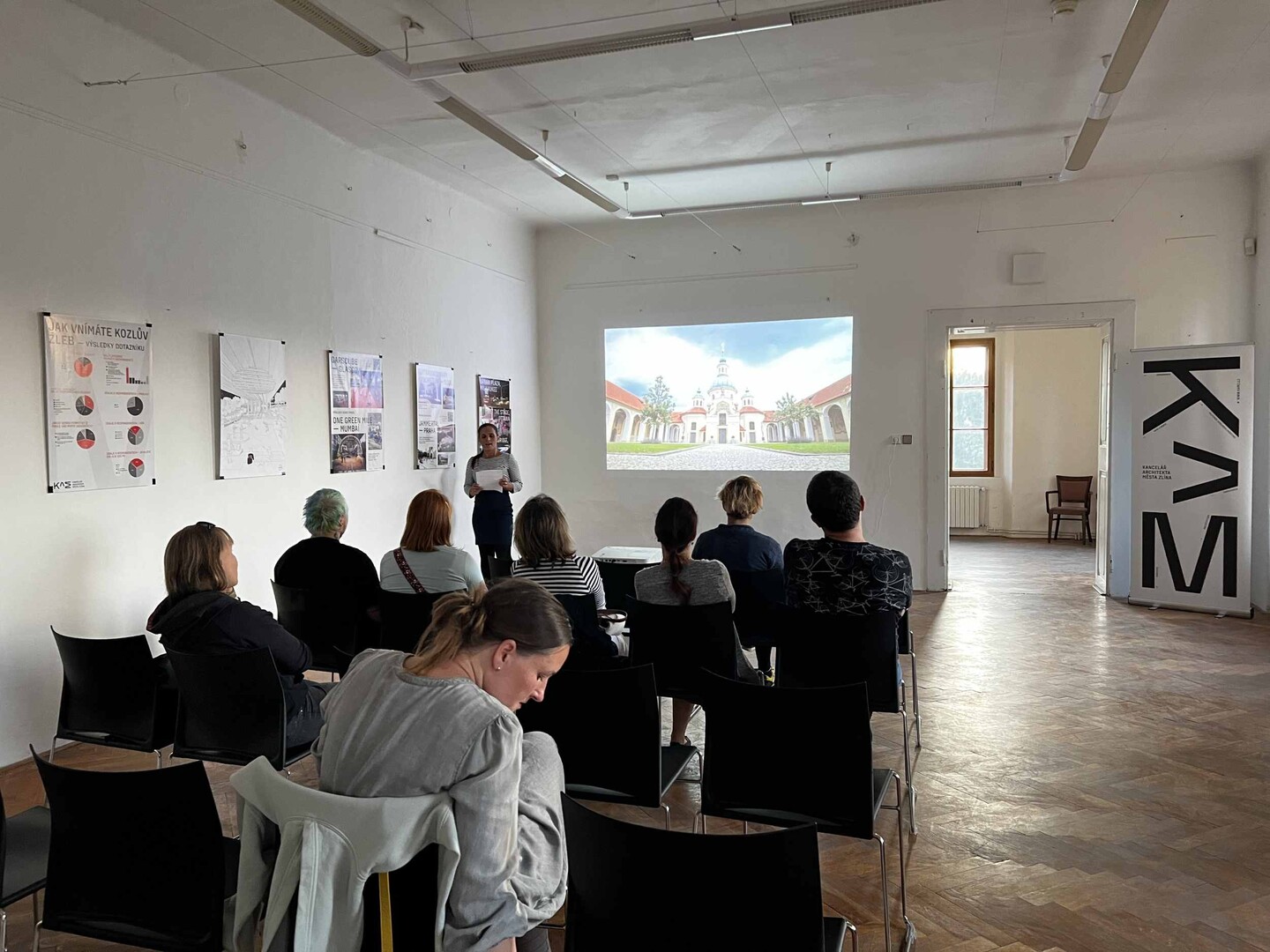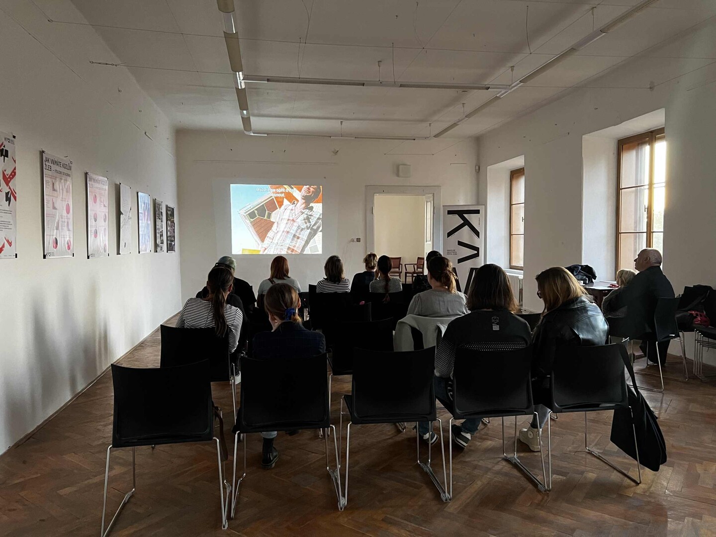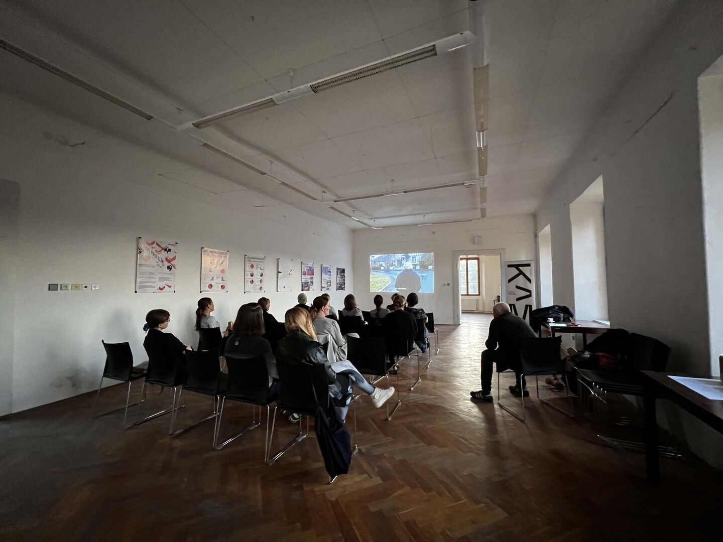 Návštěvníci tak měli možnost nahlédnout do prostor, kde KAM sídlí a prostřednictvím vystavených plakátů v galerii na schodech i v samotném prezentačním sále se seznámit s činností kanceláře.”