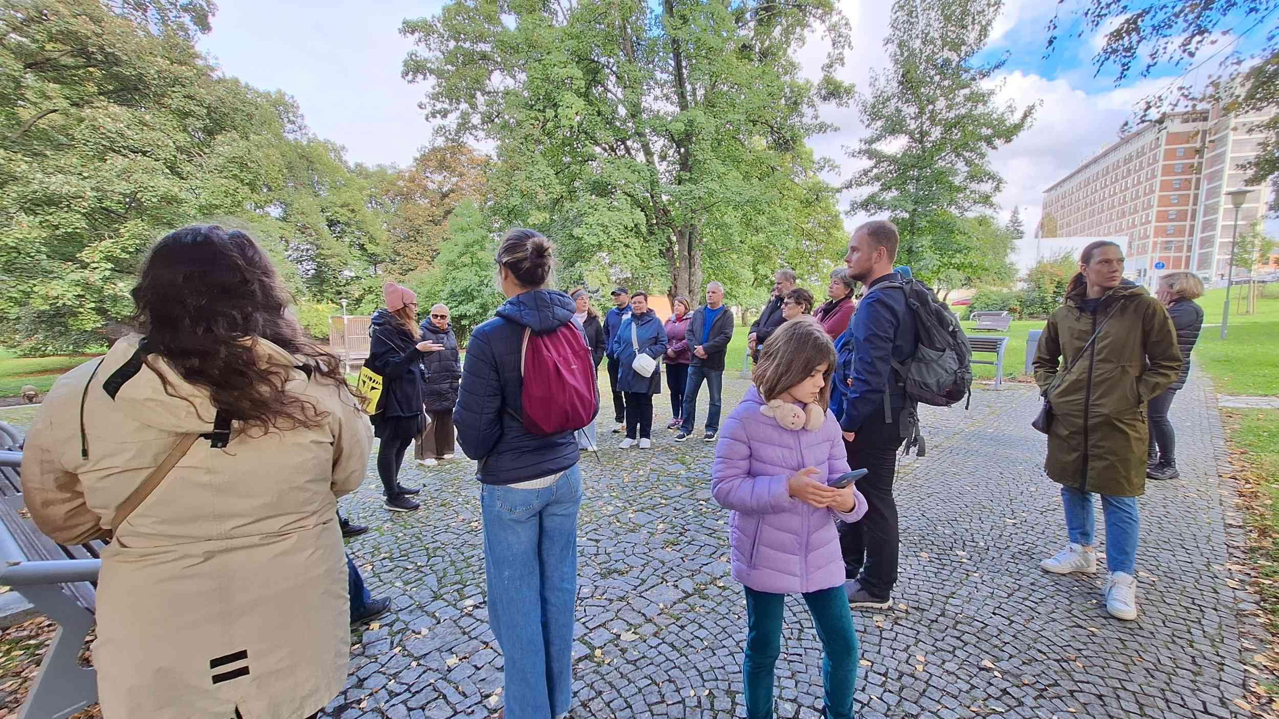 Účastníkům komentované procházky v neděli 5. října přiblížila Zuzana Hegmonová z Odboru městské zeleně práci zahradní architektky, její specifikace i úskalí, se kterými se při tvorbě veřejných prostor musí potýkat.