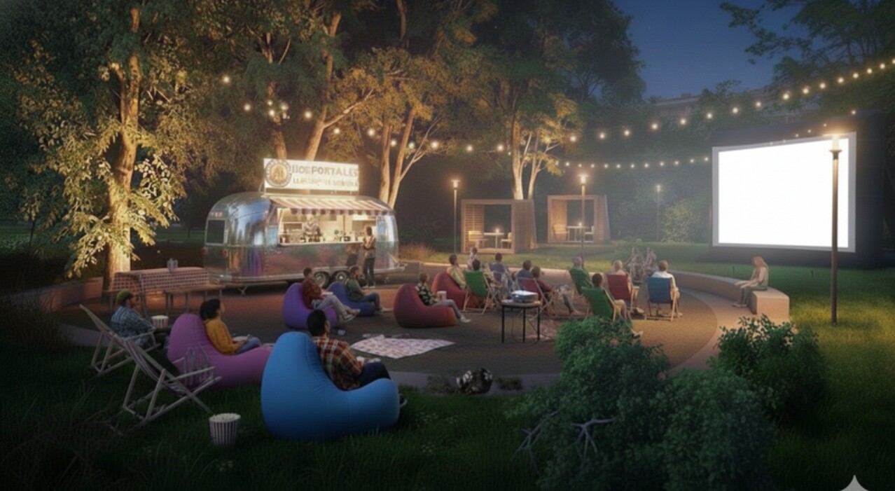 Koncept počítal například s možností venkovního promítání, umístěním foodtrucku a s rozšířením aktivit v prostoru psí loučky, kde byly navrženy workoutové prvky a stoly pro stolní tenis. Návrh tak kombinoval rekreační, kulturní i komunitní funkce a ukázal potenciál místa jako živého veřejného prostoru pro mladé i pro širší veřejnost.