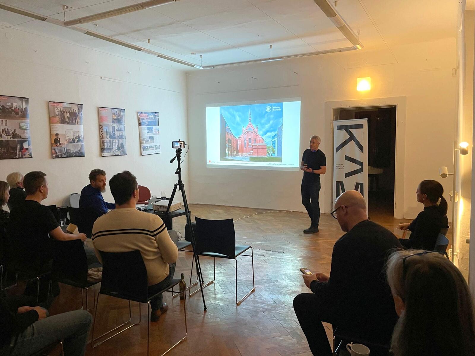 Jiným typem zkušenosti je obnova zámeckého areálu v Koryčanech, kde shoda mezi architekty a památkáři zatím nebyla nalezena. Přednáška tak nabídla i otevřenou reflexi procesů, které ovlivňují zacházení s kulturním dědictvím — od rozdílných interpretací hodnot až po obtížné hledání kompromisu v pracovních postupech.