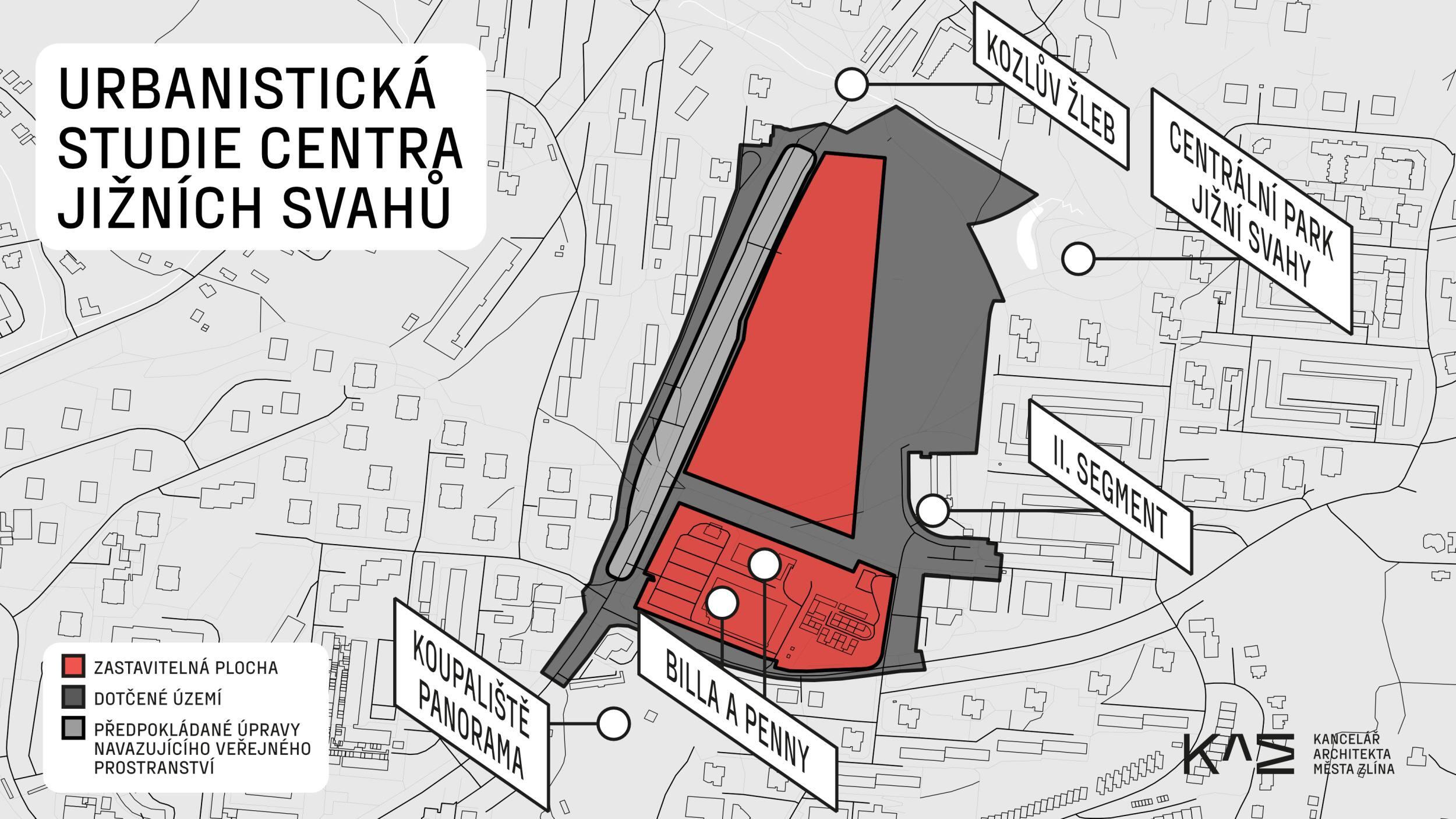 Kancelář architekta města Zlína připravuje na základě pověření Rady města urbanisticko-architektonickou soutěž pro centrální část Jižních Svahů, vymezenou ulicemi Okružní a Středová a prostorem Centrálního parku.