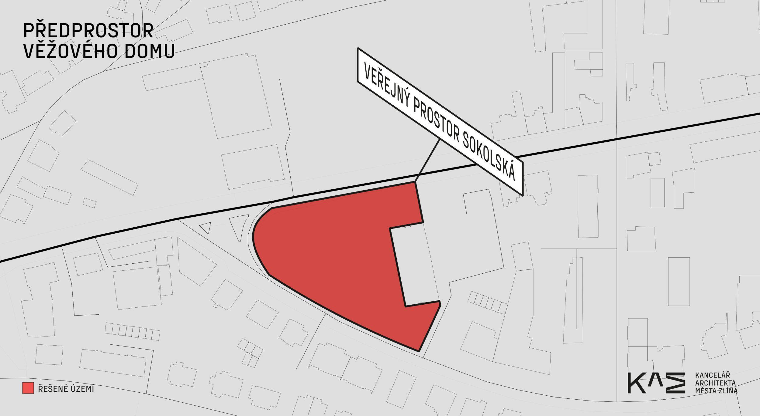 Veřejný prostor před bytovým domem na Sokolské ulici je pro Kancelář architekta města Zlína zajímavý hned z několika důvodů – ve svém sousedství nabízí potenciál kultivovaného prostoru pro trávení volného času, odpočinek a hry dětí. Může tvořit lokální místo k setkávání v blízkosti centra a také nedaleko Sokolovny a sportovišť.