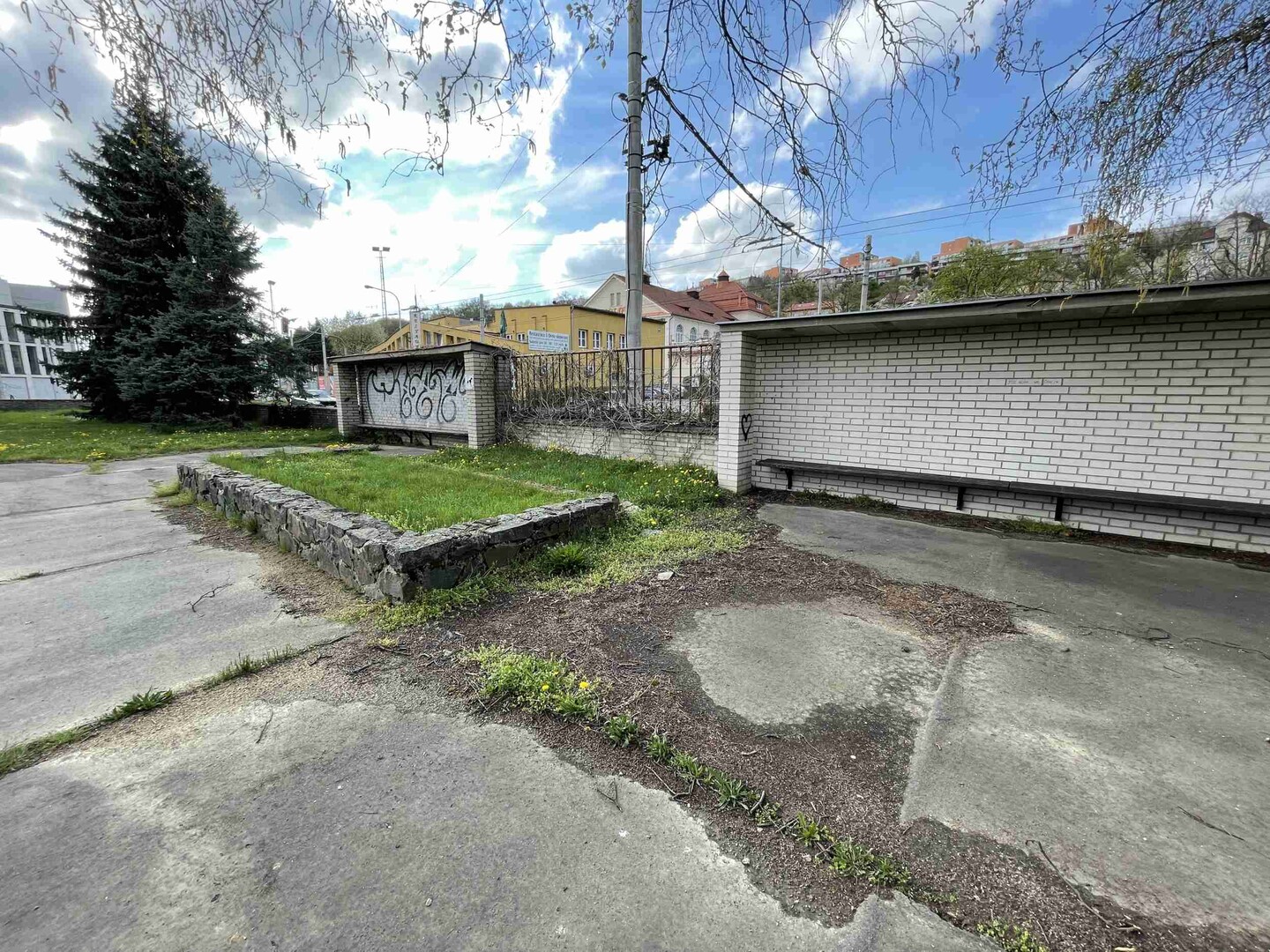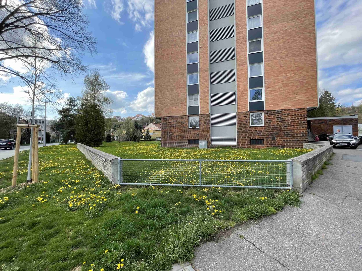 Poměrně velký nevyužívaný prostor u bytového domu nyní bohužel působí nepřístupně a nenabízí příliš mnoho aktivit k trávení volného času.