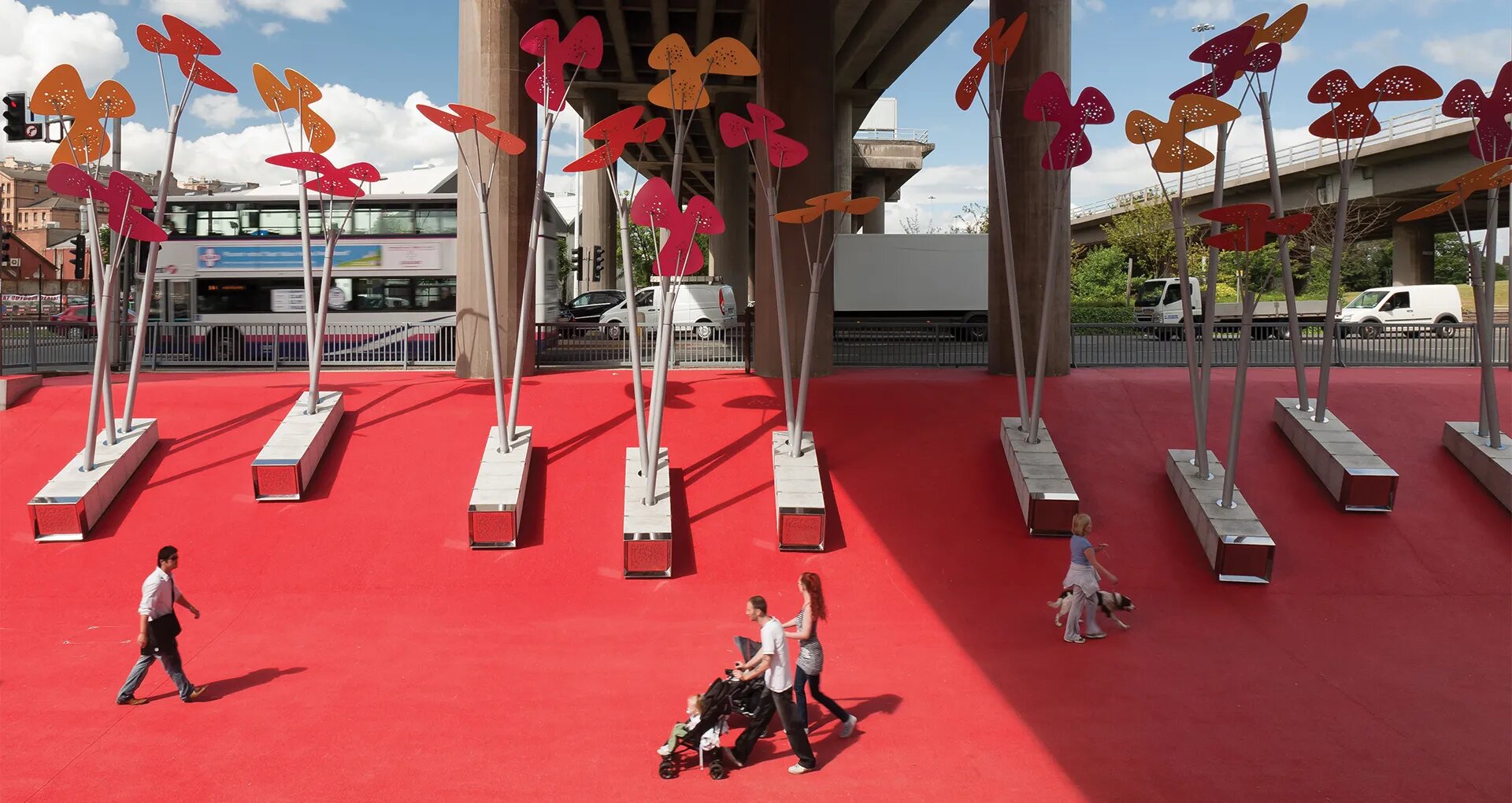 Projekt Folly for a Flyover měl za cíl ukázat potenciál nevyužívaného prostoru pod dálnicí jako nového veřejného prostoru. Instalace byla dočasná — na 9 týdnů se nehostinné místo proměnilo na místo pro místní obyvatele a přilákalo na 40 000 návštěvníků.