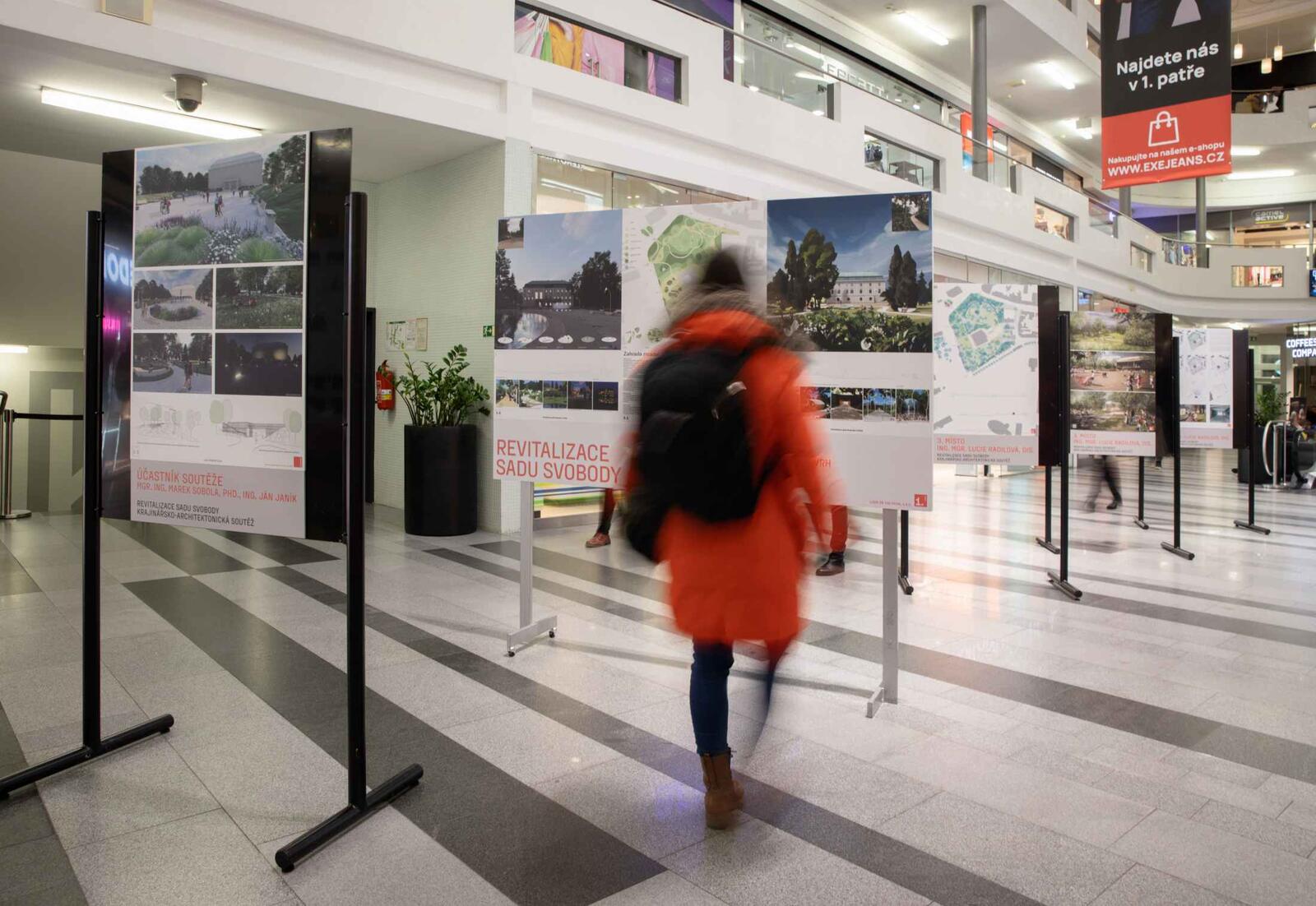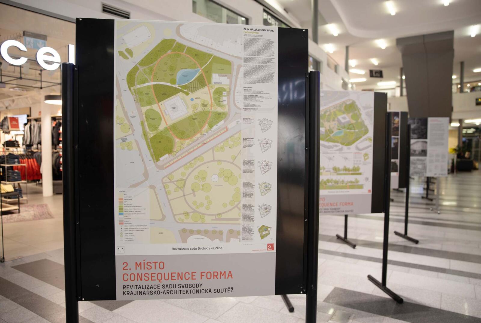 Výsledky jsme chtěli představit tak, aby si je mohl prohlédnout každý obyvatel města, proto jsme vybrali pro výstavu prostory nákupního centra Zlaté Jablko a pro prezentaci autorů oceněných návrhů sál v multikině Golden Apple Cinema.