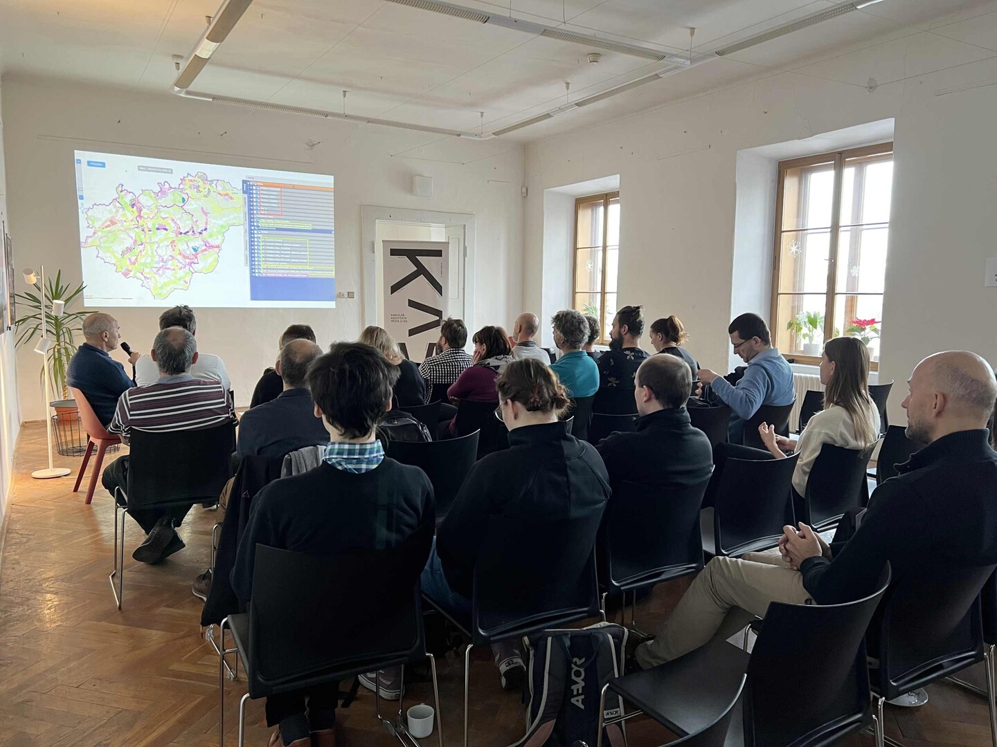 Méně formální program jsme v pátek 8. prosince zahájili prezentací ředitele KAM Zlín Jindřicha Nového, který představil práci naší kanceláře prostřednictvím aktuálních, plánovaných i realizovaných projektů. Odborný program v přednáškovém sálu zakončil Jaroslav Pospíšil (Zlínský kraj) prezentací k portálu JUAP a digitalizaci územních plánů.