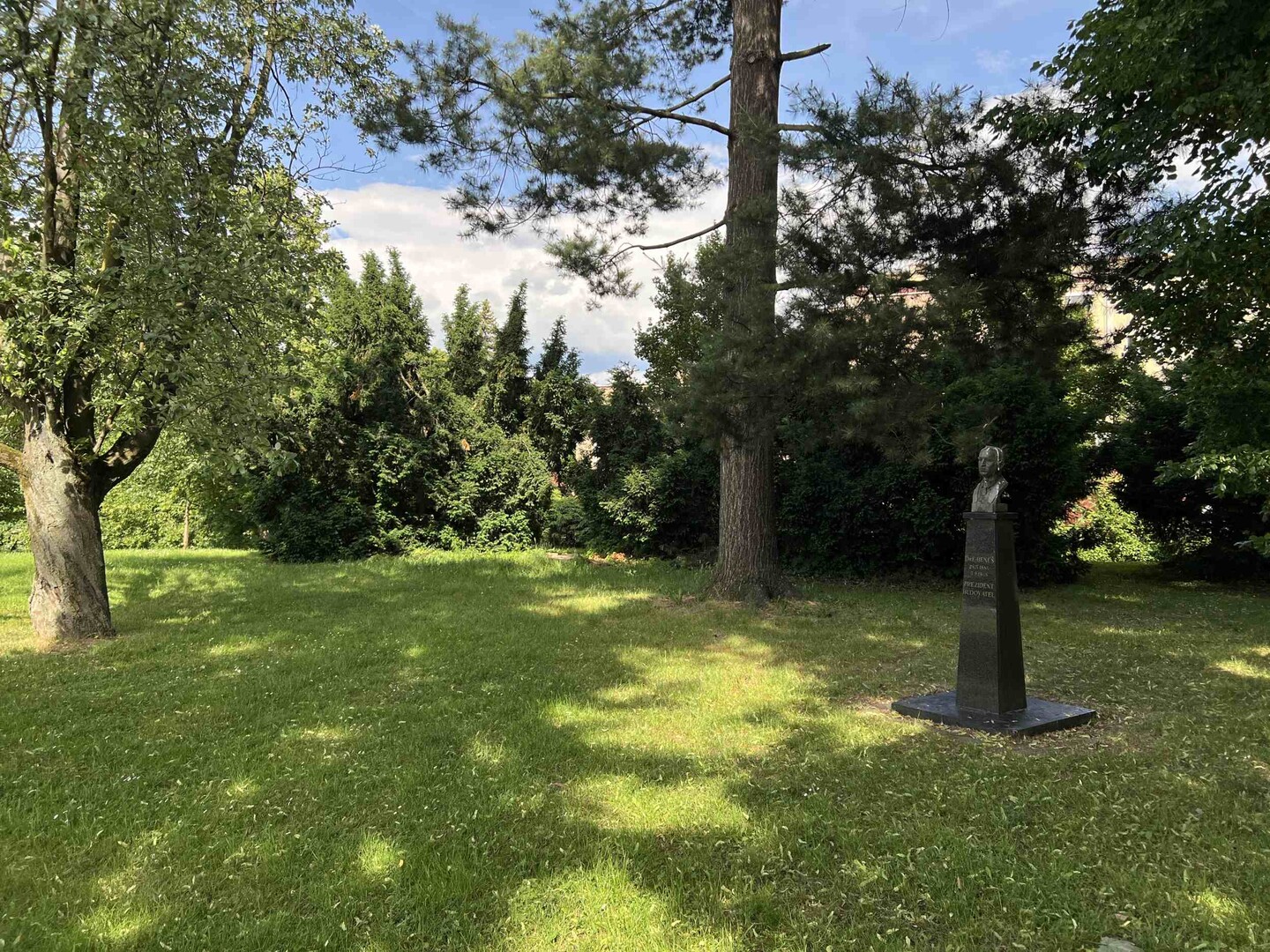Busta E. Beneše je přemístěna z přední části parku blíž ke zpevněné ploše.