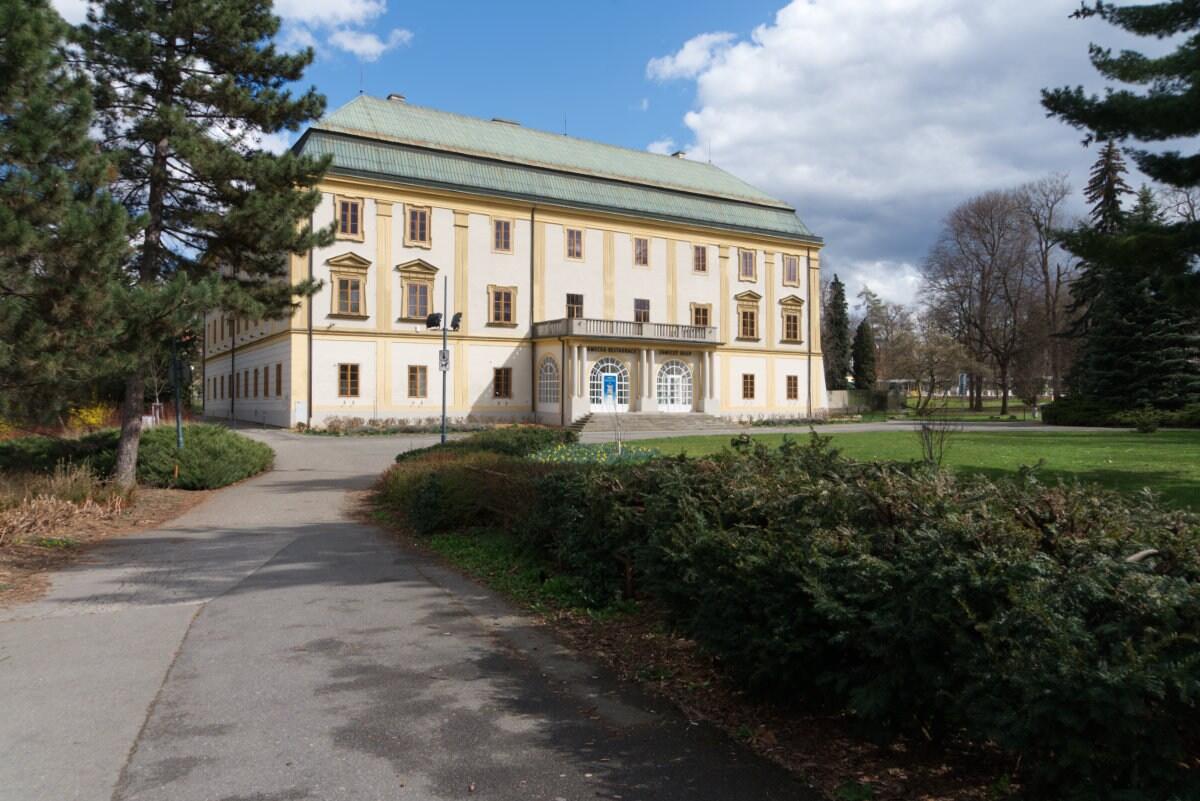 Zámecká piazzetta Na park jsou tři hlavní programatické nároky: První souvisí s provozem budoucí kulturně paměťové instituce zámku. Tomuto nároku vycházíme vstříc mlatovou piazzettou s ochrannou vegetací, která opticky chrání prostranství západního traktu zámku před frekventovanou mnohaproudou silnicí a poskytuje klidný prostor pro venkovní posezení zámecké restaurace.