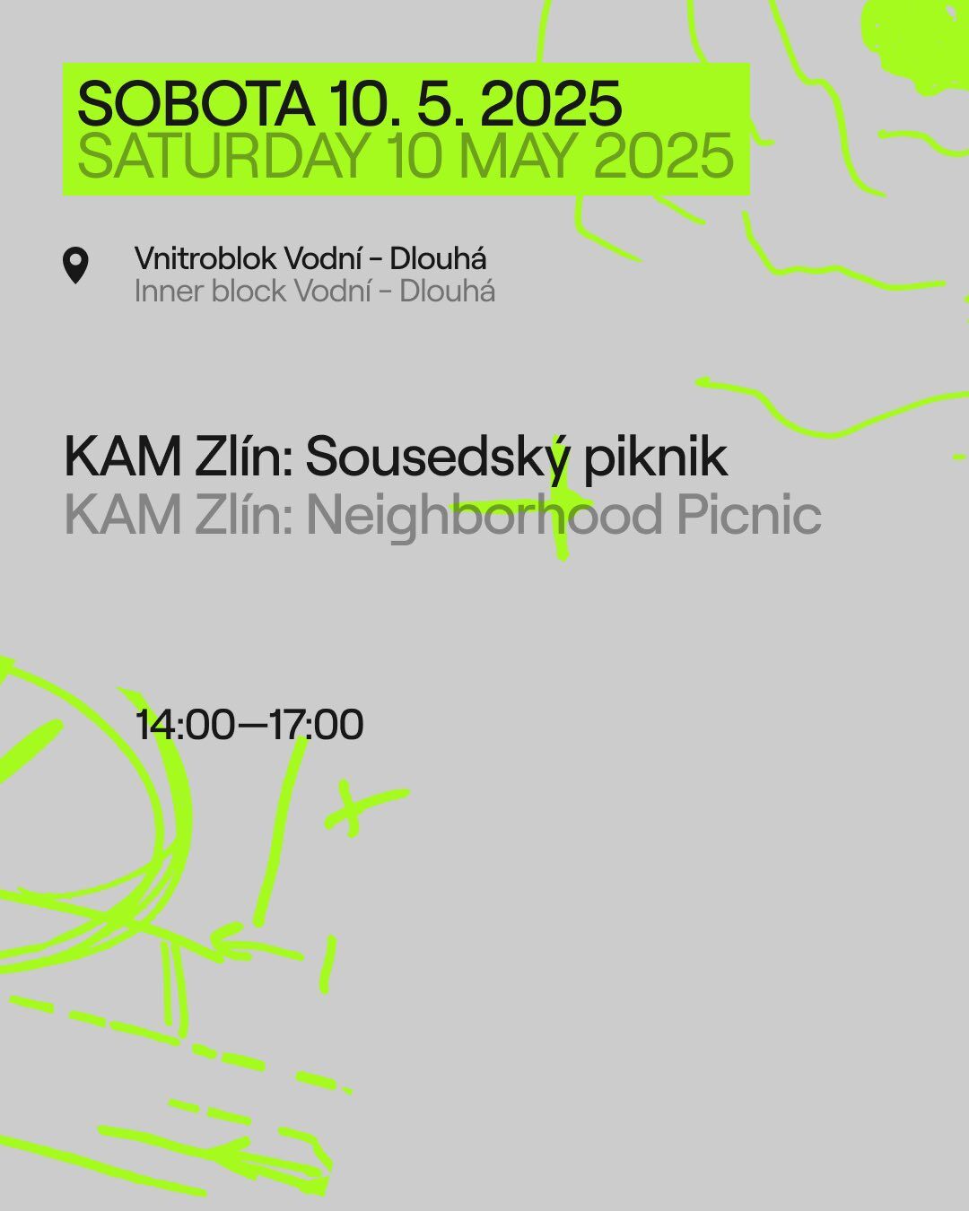 V sobotu proběhne ve vnitrobloku sousedský piknik. Architekti z Kanceláře architekta města Zlín zde budou společně s obyvateli diskutovat o budoucím využití a potenciálu tohoto polo-veřejného prostoru.