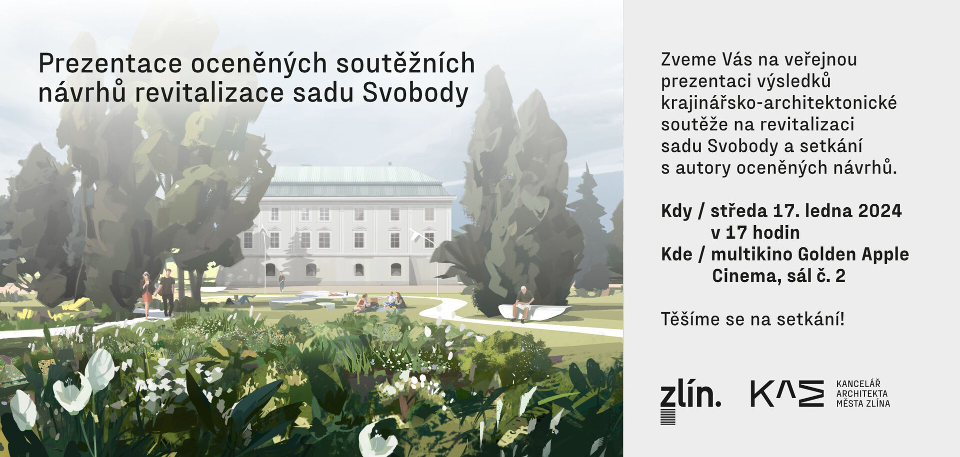 Zveme Vás na komentované představení oceněných návrhů na revitalizaci sadu Svobody za účasti autorských týmů.