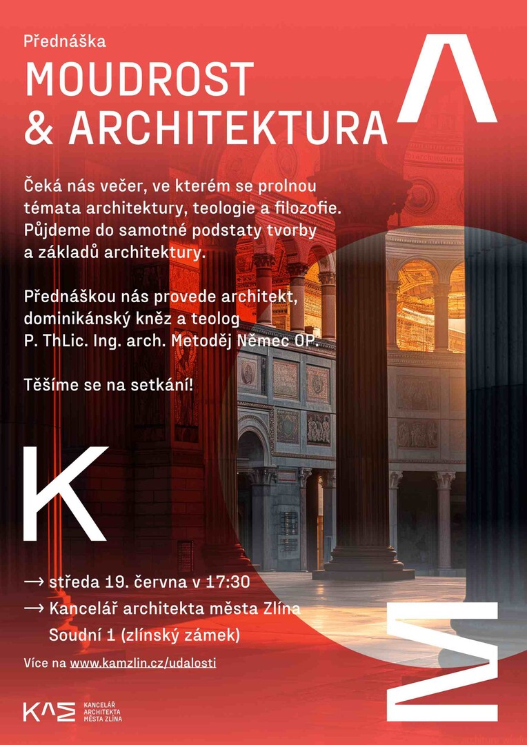 Přednáškou nás provede architekt, dominikánský kněz a teolog P. ThLic. Ing. arch. Metoděj Němec OP. Na Fakultě architektury VUT byl P. Němec mimo jiné spolužákem ředitele KAM Zlín Jindřicha Nového.
