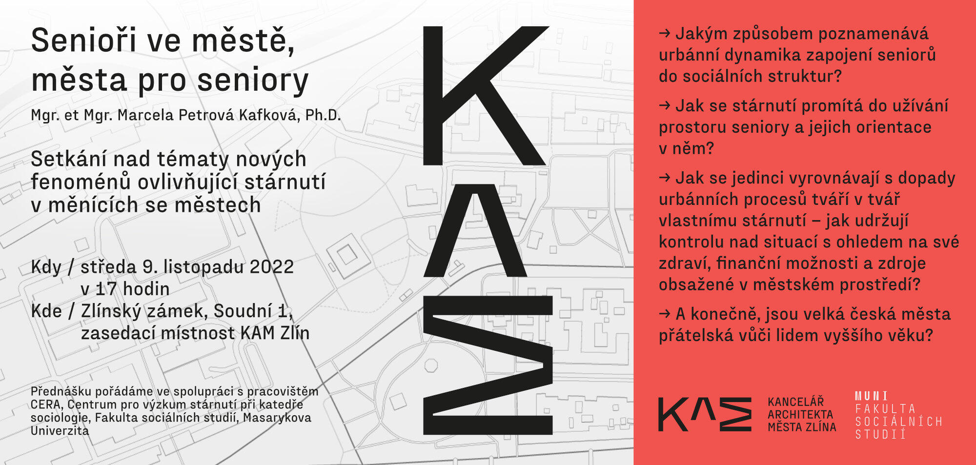 Přednášku pořádáme ve spolupráci s pracovištěm CERA, Centrum pro výzkum stárnutí při katedře sociologie, Fakulta sociálních studií, Masarykova Univerzita.